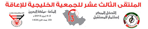 افتراضي الملتقى الثالث عشر للجمعية الخليجية للاعاقة من 2-4 أبريل 2013 م الموافق 21-23 جماد الأول 1434 هـ مدينة المنامة – مملكة البحرين
