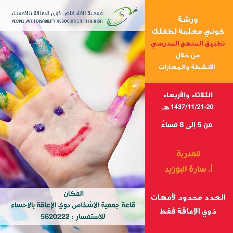 ورشة عمل – كوني معلمة لطفلك #الأحساء .أ. ساره البوزيد