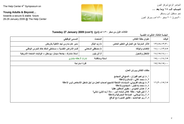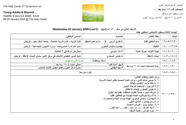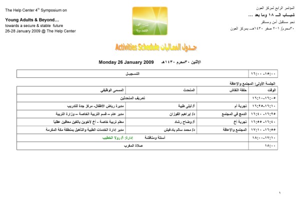 30محرم/ 1-2 صفر 1430هـ الموافق 26-28 يناير 2009م